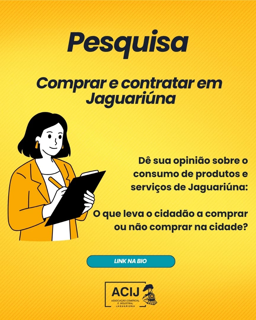 A Associação Comercial e Industrial de Jaguariúna (ACIJ) lançou uma pesquisa para entender por que parte dos moradores de Jaguariúna ainda opta por comprar produtos e contratar serviços fora do município. A iniciativa busca ouvir tanto consumidores quanto empreendedores locais, com o objetivo de identificar desafios, oportunidades e caminhos para fortalecer a economia da cidade.