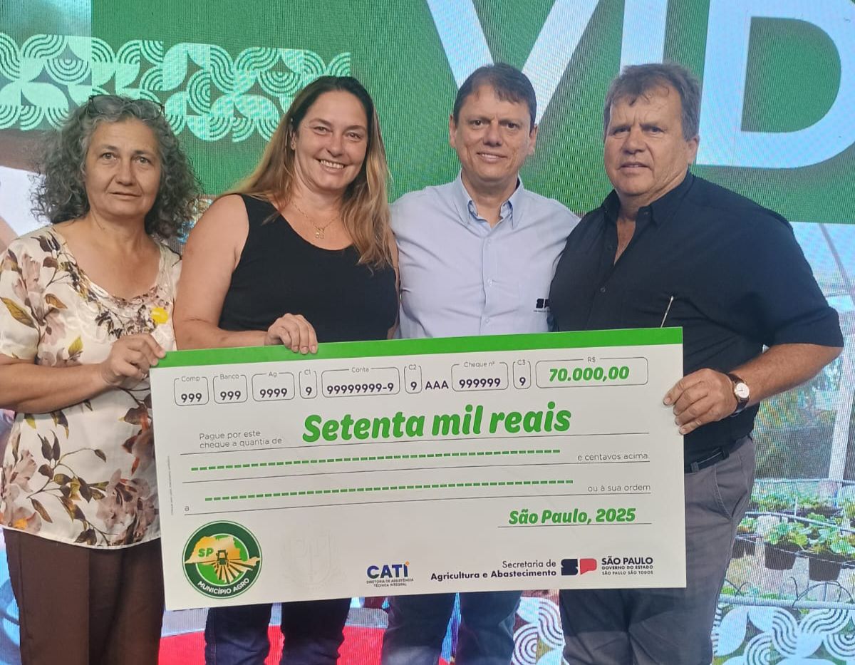 O secretário de Agricultura Odair Boer representou o município na cerimônia e recebeu oficialmente o prêmio pelas mãos do Governador Tarcísio de Freitas. Os R$ 70 mil serão destinados ao desenvolvimento de ações estruturantes ao longo de 2026, fortalecendo ainda mais o planejamento e a execução de políticas públicas voltadas ao campo.