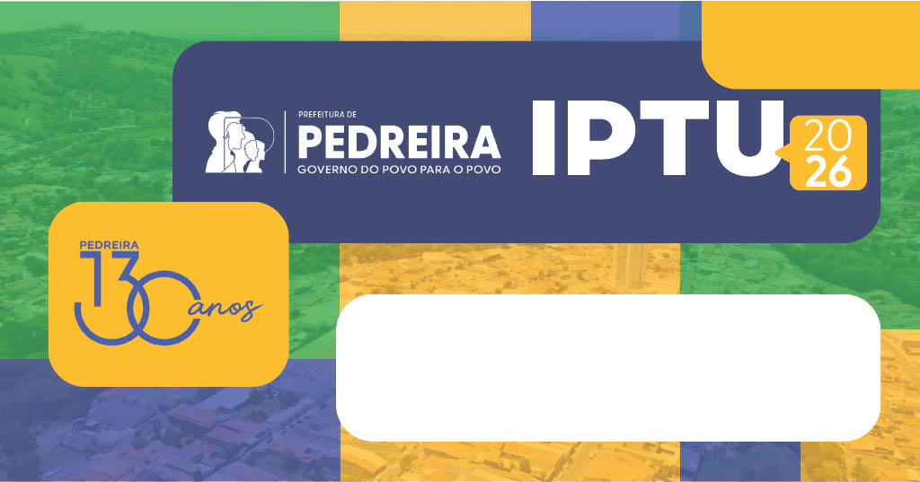 A Prefeitura Municipal de Pedreira informa que os carnês do IPTU (Imposto Predial e Territorial Urbano) de 2026 serão entregues pelos Correios, diretamente nos endereços cadastrados junto ao Setor de Cadastros Imobiliários da Municipalidade.