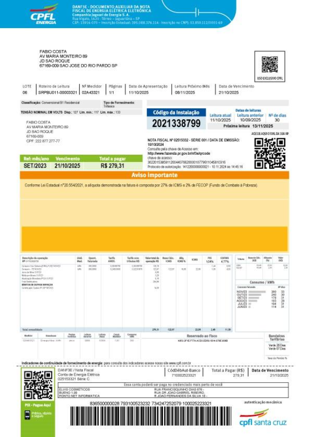 Novo modelo de conta da CPFL Santa Cruz