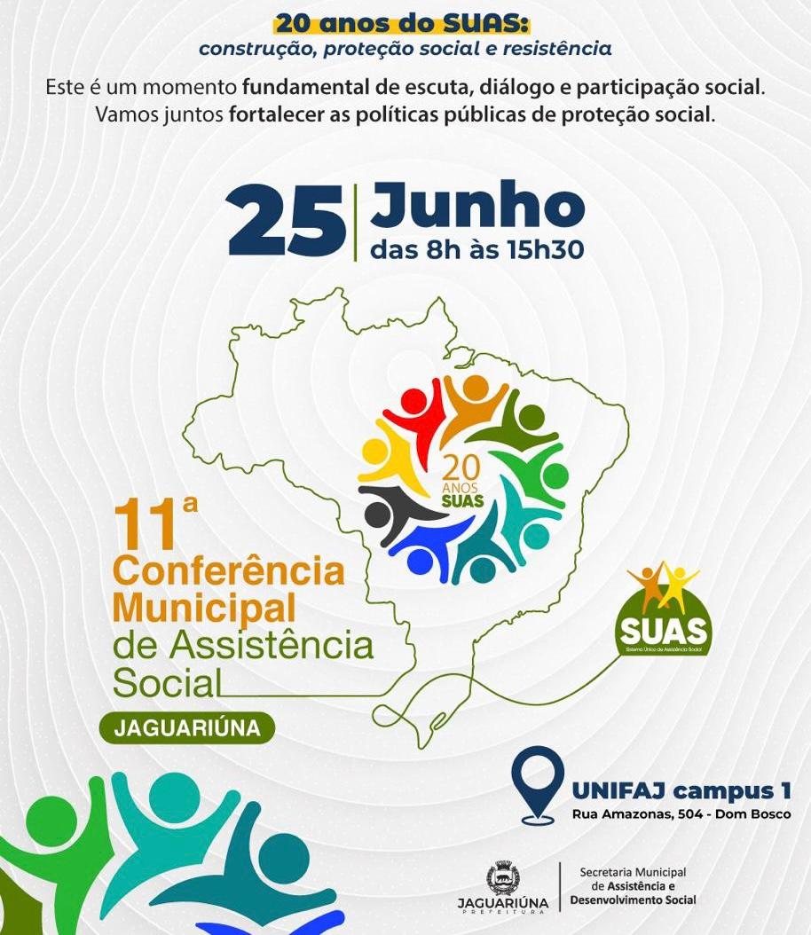 Nesta quarta-feira, 25 , Jaguariúna sedia a 11ª Conferência Municipal de Assistência Social, um dos principais eventos do setor no município. A programação acontece das 8h às 15h30, no anfiteatro do Campus 1 da UniFAJ, e é aberta a toda população.