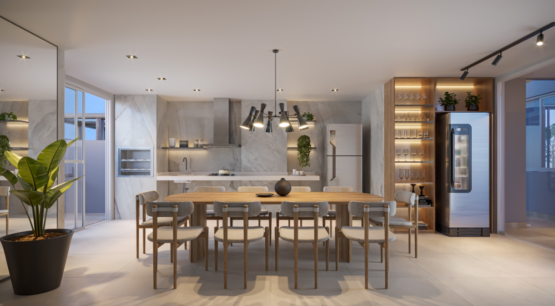 Esse comportamento se traduz diretamente na forma como novos empreendimentos são pensados. Mais do que localização, o mercado passa a integrar soluções que ampliam a autonomia do morador no próprio espaço, reduzindo a necessidade de sair de casa para atividades cotidianas.