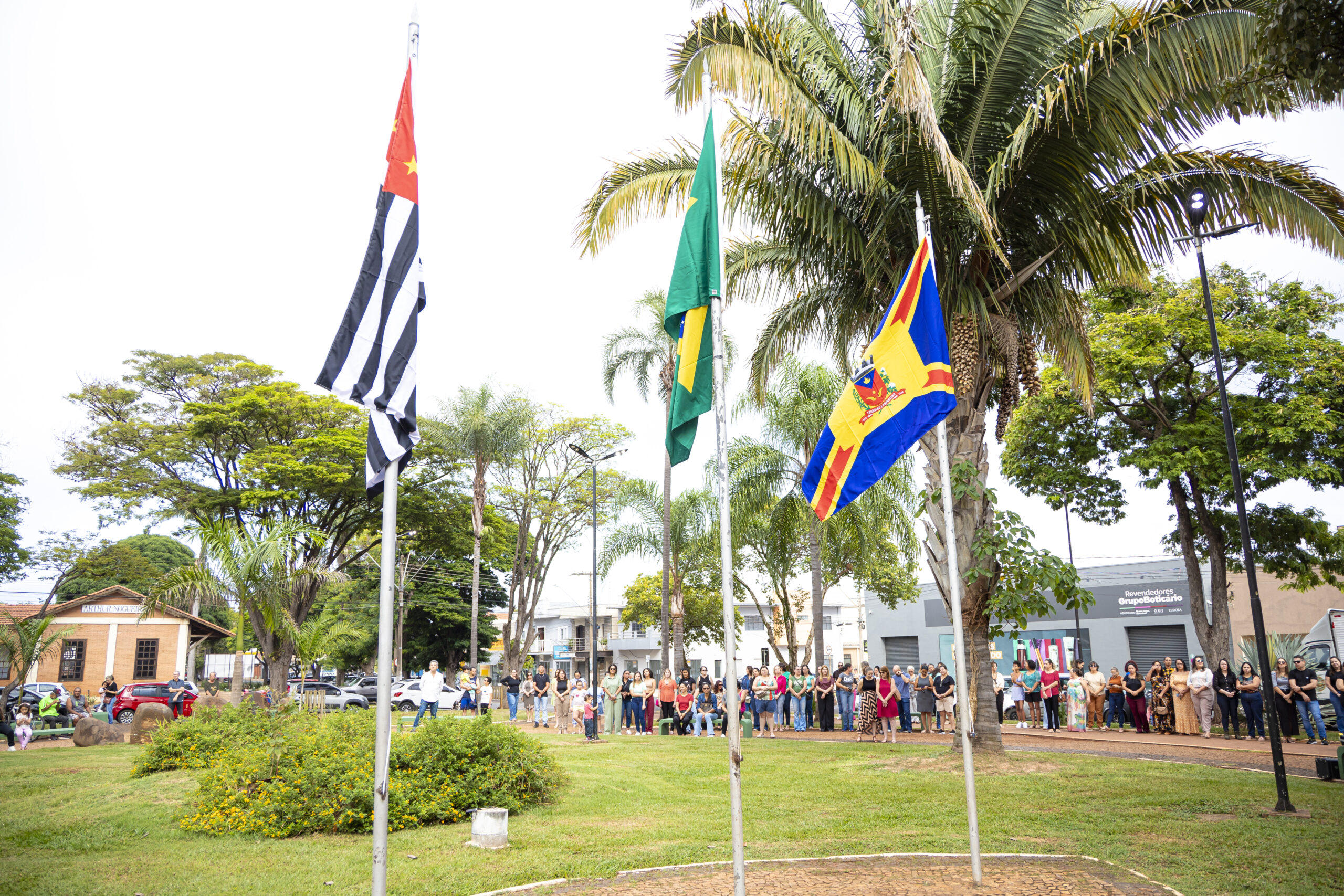 Durante o evento, será feito o hasteamento das bandeiras, acompanhado pela execução do Hino Nacional e do Hino Municipal, em um momento de respeito e valorização da história do país.
