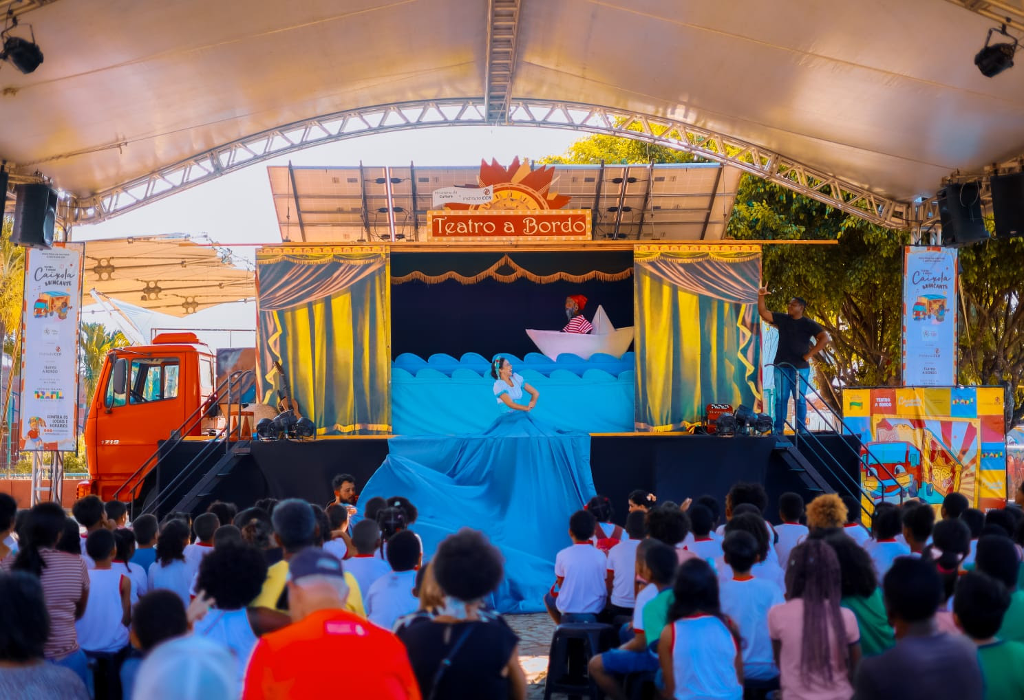 Grupo realiza programação artística gratuita em seu caminhão-palco, além de oficinas de reciclagem nas escolas e intervenções com artistas locais