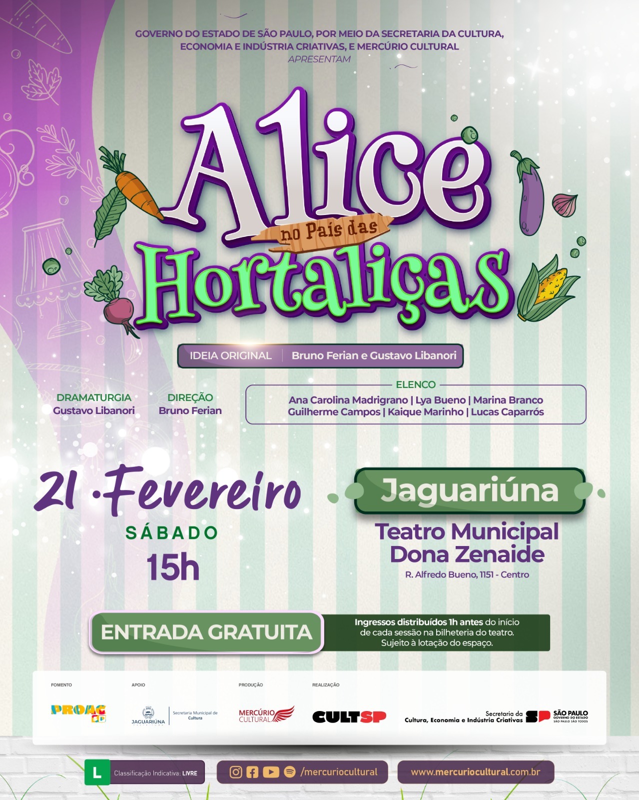 A peça é uma realização da Mercúrio Cultural, por meio do Programa de Ação Cultural do Governo do Estado de São Paulo – ProAc, com apoio da Secretaria de Cultura de Jaguariúna.